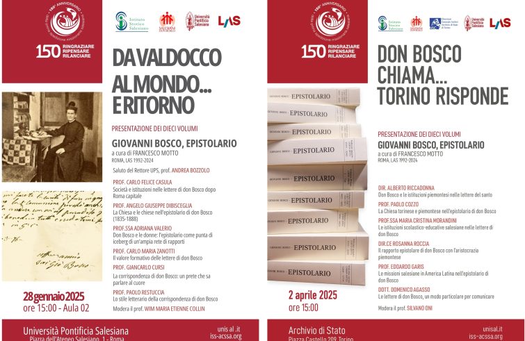 “Da Valdocco al mondo… e ritorno” e “Don Bosco chiama… Torino risponde” sono i titoli dei due eventi per presentare l’Epistolario completo di Giovanni Bosco, curato da Francesco Motto e pubblicato dalla Las tra il 1992 e il 2024. Il primo appuntamento si terrà il 28 gennaio, alle ore 15, presso l’Università pontificia salesiana di Roma, con interventi di Carlo Felice Casula, Angelo Giuseppe Dibisceglia e Adriana Valerio, che approfondiranno il valore storico, formativo e pastorale delle lettere di don Bosco. Il secondo evento è previsto il 2 aprile, alle ore 15, presso l’Archivio di Stato di Torino, con interventi di Alberto Riccadonna, Paolo Cozzo e Domenico Agasso, per analizzare il rapporto di don Bosco con il Piemonte e il suo impatto oltre i confini regionali. Entrambi gli incontri offriranno un’occasione per riflettere sulla corrispondenza del fondatore dei salesiani, uno strumento fondamentale per comprendere la sua visione spirituale e il suo impegno sociale. “Sono tanti i modi per leggere i dieci volumi dell’epistolario di don Bosco – spiega don Motto, socio fondatore e direttore per 20 anni dell’Istituto storico salesiano –. Nei due eventi indicati alcuni specialisti di singole discipline danno una lettura attenta e profonda delle sue semplici ma numerosissime lettere (4682), onde arrivare a scoprire le dimensioni dell’uomo don Bosco, dell’educatore, del direttore di anime, del promotore di missioni, del fondatore di un movimento internazionale, del santo”. L’Epistolario rivela l’universalità del carisma salesiano, presente in 137 paesi e ispiratore del Sistema preventivo applicato in molte istituzioni educative.