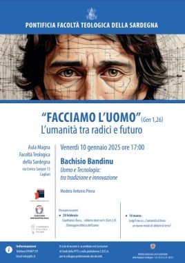 Venerdì 10 gennaio, alle ore 17.00, nell’aula magna della Facoltà teologica della Sardegna a Cagliari, si terrà il secondo appuntamento del ciclo di incontri dedicati all’antropologia sul tema generale: “‘Facciamo l’uomo’ (Gen 1,26): l’umanità tra radici e futuro”. Il relatore di questo incontro è Bachisio Bandinu, antropologo e scrittore, introdotto da don Antonio Pinna, docente emerito di Sacra Scrittura alla Facoltà Teologica della Sardegna. Il titolo dell’intervento di Bandinu è: “Uomo e Tecnologia: tra tradizione e innovazione”. L’incontro è organizzato dalla Facoltà teologica della Sardegna, dal Comitato Sardegna grandi eventi e dall’associazione Suor Giuseppina Nicoli.