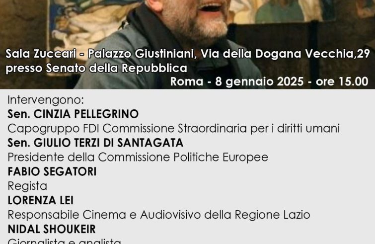 “Paolo Dall’Oglio”: è il titolo del film documentario che sarà proiettato domani 8 gennaio, presso la Sala Zuccari di Palazzo Giustiniani a Roma, su iniziativa della senatrice Cinzia Pellegrino. Realizzato da Fabio Segatori, è il racconto della vita del gesuita romano rapito a Raqqa, in Siria, il 29 luglio 2013. Due settimane dopo, il 12 agosto 2013, venne data notizia della sua uccisione ma il corpo non è mai stato ritrovato. La sua vita, si legge in un comunicato stampa degli organizzatori, “è stata dedicata alla fede, al dialogo interreligioso, all’accoglienza e alla Pace: un’avventura umana che è anche una parabola per i giovani”. Durante la presentazione è previsto l’intervento, oltre che della senatrice Pellegrino, capogruppo di Fratelli d’Italia nella Commissione straordinaria per i Diritti umani, anche del senatore Giulio Terzi di Santagata, presidente della Commissione politiche europee. Prenderanno inoltre parte all’incontro il regista Fabio Segatori, la responsabile Cinema e Audiovisivo della Regione Lazio, Lorenza Lei. E poi, ancora Nidal Shoukeir, giornalista e analista, Francesca Dall’Oglio, sorella di padre Paolo, Nader Akkad, imam della Grande Moschea di Roma, e padre Federico Lombardi, vaticanista e presidente della Fondazione vaticana Joseph Ratzinger.