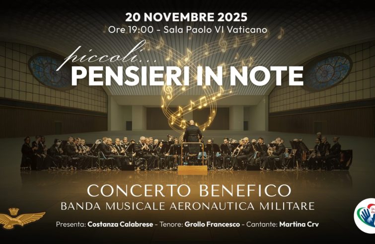 Il concerto rientra nel progetto solidale “Un dono dal cielo per il Bambino Gesù”, promosso dall’Aeronautica militare in tutto il 2025 con l’obiettivo di sostenere l’Ospedale pediatrico di Roma nell’acquisto e nel potenziamento di due stampanti bioprinting di ultima generazione per i laboratori di ricerca: strumenti destinati a migliorare le possibilità di cura e ricostruzione tissutale dei piccoli pazienti. L’iniziativa rappresenta non solo un importante momento di musica e solidarietà, ma anche l’occasione per rinsaldare il profondo legame che da anni unisce l’Aeronautica militare e il Bambino Gesù. Sono tantissimi ogni anno i trasporti sanitari urgenti effettuati dai reparti di volo dell’Aeronautica militare a favore di piccoli pazienti diretti all’Ospedale pediatrico romano, punto di riferimento nazionale e internazionale per la cura dei bimbi più fragili. Sul palco, insieme alla Banda diretta dal maggiore Pantaleo Leonfranco Cammarano, si esibiranno il tenore Francesco Grollo, da sempre vicino alle iniziative di solidarietà promosse dalle Forze armate, e la giovanissima cantante Martina Crv, talento emergente del panorama musicale nazionale e attuale detentrice del titolo di Best European Junior Singer del Tour Music Fest 2024. Durante l’evento sarà possibile effettuare donazioni a favore della Fondazione Bambino Gesù, sia nel foyer dell’Aula Paolo VI sia attraverso i canali digitali ufficiali.