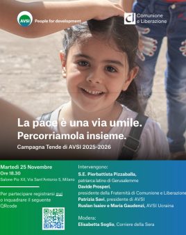 Martedì 25 novembre alle ore 18.30, presso il Salone Pio XII, via Sant’Antonio 5 a Milano, Avsi e Comunione e liberazione promuovono un evento dal titolo “La pace è una via umile. Percorriamola insieme”, in occasione del lancio della nuova Campagna Tende, insieme di eventi di sensibilizzazione e raccolta fondi a sostegno di progetti di sviluppo e di emergenza nel mondo. L’incontro sarà introdotto da Patrizia Savi, presidente di Avsi, e darà spazio poi ad alcune testimonianze in diretta dalla Terra Santa, con un collegamento con il card. Pierbattista Pizzaballa, patriarca di Gerusalemme dei Latini, e dall’Ucraina, con Ruslan Isaiev, responsabile di Avsi in Ucraina, alle quali seguirà l’intervento di Davide Prosperi, presidente della Fraternità di Comunione e liberazione, che approfondirà il tema della campagna e cosa significa che la pace è “una via umile” da percorrere insieme. Modera Elisabetta Soglio, giornalista del Corriere della Sera. “La Campagna Tende, che ha quasi trenta edizioni alle spalle, punta in questo nuovo anno a raccogliere fondi in particolare per progetti di emergenza o sviluppo in Palestina, Ucraina, Siria, Libano, Giordania e Italia”, spiega un comunicato. In particolare in Palestina, Avsi sostiene le famiglie gazawe collaborando con il patriarcato latino di Gerusalemme per fornire aiuti e beni essenziali distribuiti tramite la parrocchia della Sacra Famiglia, mentre in Cisgiordania collabora con la Custodia di Terra Santa per il pagamento delle tasse scolastiche, le attività extracurriculari, la prevenzione dell’abbandono scolastico e corsi per il sostegno psicosociale dei bambini e delle loro famiglie”. In Ucraina, Avsi “opera con un approccio integrato che combina educazione, protezione dell’infanzia e supporto psicosociale nei Community Center, spazi sicuri che offrono attività ricreative, doposcuola, supporto psicologico e assistenza ai genitori”. Altre iniziative sono in Siria, Libano e Giordania.