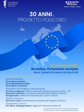Un evento al Parlamento europeo per celebrare i “30 anni del Progetto Policoro”. Si terrà al mercoledì 12 novembre e a promuoverlo è la Commissione delle Conferenze episcopali dell’Unione europea (Comece). Il Progetto Policoro è un’iniziativa della Conferenza episcopale italiana (Cei), lanciata nel 1995 con l’obiettivo di promuovere l’occupazione giovanile nel Mezzogiorno d’Italia e di contrastare la disoccupazione e l’emigrazione giovanile, soprattutto nelle regioni più povere del Paese. “L’evento al Parlamento europeo – spiega la Comece – intende celebrare l’anniversario e delineare le prospettive future di questa iniziativa della Conferenza episcopale italiana che, nel tempo, ha contribuito a far sì che giovani formati spiritualmente, economicamente e culturalmente potessero mettersi al servizio di altri giovani desiderosi di intraprendere un’attività professionale”. Dopo i saluti istituzionali degli eurodeputati Paolo Inselvini, Massimiliano Salini e Marco Tarquinio, interverranno don Bruno Bignami, direttore dell’Ufficio nazionale Cei per le i problemi sociali e il lavoro, Domenico Smimmo, formatore del Progetto Policoro, e Giorgia Basile, referente nazionale di “Gesti concreti”. L’incontro sarà moderato da don Ivan Licinio, coordinatore nazionale del Progetto. Le conclusioni saranno affidate a mons. Giuseppe Baturi, arcivescovo di Cagliari e segretario generale della Cei. Nato dopo il Convegno ecclesiale di Palermo del 1995 dall’intuizione di don Mario Operti, sacerdote torinese che seppe radunare attorno all’iniziativa le migliori energie della Chiesa del Sud Italia, il Progetto Policoro ha inizialmente coinvolto le diocesi di Puglia, Calabria e Basilicata. Successivamente, l’iniziativa si è estesa anche al Nord Italia: attualmente, 110 diocesi hanno implementato il Progetto, con 135 animatori di comunità in servizio, supportati da diverse associazioni note come “filiere”. In 30 anni, grazie a Policoro, sono stati formati più di 1.000 animatori e circa 3.000 giovani hanno trovato impiego in imprese, cooperative e attività lavorative. Per maggiori informazioni sul Progetto Policoro, clicca qui. L’incontro si terrà presso la Sala Altiero Spinelli 1H1 del Parlamento europeo, a Bruxelles, dalle ore 11 alle ore 12.30. Per informazioni e iscrizioni, inviare una mail a policoro@chiesacattolica.it.