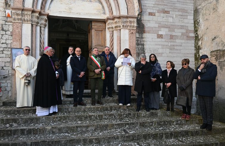 “Dio Santo, Dio forte, Dio immortale: abbi pietà di noi e del mondo intero”. Questa preghiera è stato il filo rosso che ha caratterizzato la vita di don Settimio Berzetta (1922-2003), parroco a Macerino di Acquasparta e a Poggio Lavarino di Terni prima e a Beroide di Spoleto poi, che amava ripetere più volte al giorno sia negli incontri di comunità che in quelli con le singole persone. E l’arcivescovo di Spoleto-Norcia, mons. Renato Boccardo, l’ha riproposta nella messa che ieri, prima domenica di Avvento, ha celebrato a Beroide di Spoleto in occasione dell’intitolazione al sacerdote della piazza antistante la chiesa del paese, alla presenza delle autorità civili e regionali. Commentando il Vangelo, il presule ha ricordato la figura di don Berzetta come quella del “cristiano che riveste l’abito della luce, abito di giustizia, di verità e di perdono. E don Settimio lungo tutta la sua vita ha indicato la strada della luce e ha messo in guardia dai pericoli della notte”. Dopo mons. Boccardo a ricordare la figura di don Berzetta, “uomo di preghiera e carità”, è stato il pievano della Pievania di S. Giacomo, mons. Alessandro Lucentini, e con lui anche Marina Mazzocchi, presidente della Pro Loco di Beroide, Federico Cesaretti, assessore allo sport e alle opere pubbliche, Sergio Grifoni, vicepresidente del Consiglio Comunale, e il sindaco di Beroide, Andrea Sisti: “Questa piazza che oggi intitoliamo a don Settimio – ha detto il primo cittadino – a breve la faremo più bella. In sinergia con l’arcivescovo, stiamo facendo tante iniziative nelle chiese, anche le più piccole, delle frazioni: rappresentano il nostro patrimonio storico e culturale, ma soprattutto di comunità. Sono il segno dell’identità e vanno tenute bene anche quando non vi si celebrata tutti i giorni”.