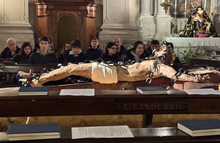Dall’altro carcere affidato ai padri Missionari Vincenziani nell’arcidiocesi di Udine, Tolmezzo, di cui è cappellano padre Claudio Santangelo. proviene un’opera d’arte realizzata da un detenuto, G.C., esposta per la prima volta in Quaresima nel duomo di Tolmezzo ed ora esposta nella basilica di S. Pietro in Vaticano, in occasione del Giubileo dei detenuti. Il crocifisso è unico, in quanto realizzato con materiale di scarto del carcere, ed è diventato espressione della fede del detenuto. Spiega l’autore: “Dopo anni chiuso in una stanza da solo, isolato da tutti, nel leggere la Bibbia si aprirono le porte del cuore verso la fede. Leggendo alcuni versetti, in me sentivo la sofferenza di Nostro Signore Gesù, ed oggi, ecco che devo la mia vita a lui. L’opera che vedete: ‘Il crocifisso’ nasce da una visione. Non mi aspettavo di compiere opere con scarti riciclati, ma di certo sono stato aiutato da lui stesso. Un giorno si apriranno anche per me queste porte fredde e gelide: a tutti voi che state leggendo le mie parole, non giudicatemi perché sono un detenuto… È da detenuto che mi sono reinserito nella giusta società”.