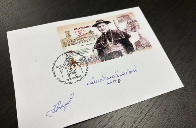 Oggi, nella cattedrale Assunzione della Beata Vergine Maria a Sofia, sede dei cattolici di rito bizantino, è stato validato il francobollo giubilare in occasione del 100° anniversario dall’arrivo di mons. Angelo Roncalli in Bulgaria come rappresentante pontificio. In seguito mons. Roncalli diventerà Papa Giovanni XXIII; proprio accanto alla cattedrale lui ha passato il suo primo anno in Bulgaria.