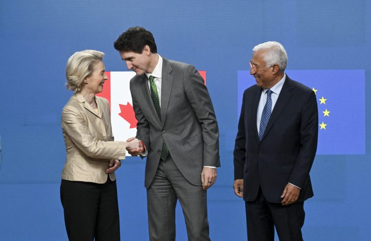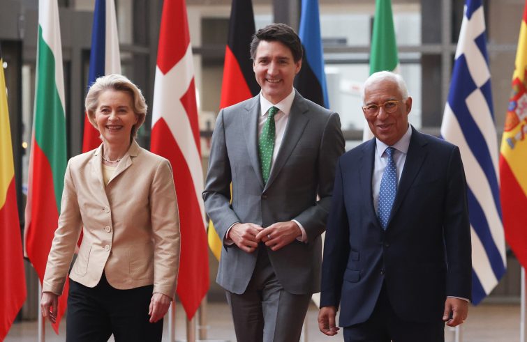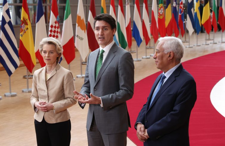 Il primo ministro canadese, Justin Trudeau, il presidente del Consiglio europeo, António Costa, e la presidente della Commissione europea, Ursula von der Leyen, si sono incontrati oggi a Bruxelles. Hanno sottolineato, secondo una nota ufficiale, “lo stretto rapporto tra Canada e Unione europea, sostenuto da un Accordo di partenariato strategico e da un Accordo economico e commerciale globale (Ceta)”. I leader hanno discusso dell’importanza di “lavorare insieme per promuovere la sicurezza e la stabilità economica globale. Hanno evidenziato la solida relazione commerciale e di investimenti tra Canada e Ue e hanno concordato sull’importanza di rinnovare gli sforzi per far progredire e diversificare il commercio”.