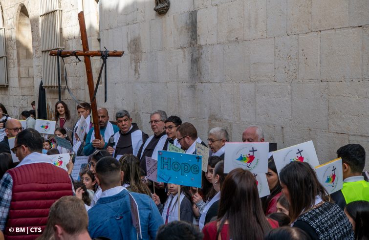 La parola “speranza” e il volto di Papa Francesco in tanti cartelli colorati di oltre 500 bambini e ragazzi che lo scorso 14 marzo hanno percorso la Via Dolorosa a Gerusalemme per l’annuale Via Crucis degli studenti delle scuole cristiane della città. Lo riferisce il sito della Custodia di Terra Santa. Per l’occasione si è pregato per la salute del Papa e per fra Ayman, vice-parroco di Gerusalemme, ferito in modo grave in un recente incidente stradale. I partecipanti hanno camminato portando al collo sciarpette bianche con il simbolo del giubileo al centro di una croce rossa. Durante il percorso anche un grande disegno di Papa Francesco che tiene per mano due bambini. Padre Ibrahim Faltas, responsabile delle scuole della Custodia, ha spiegato così l’iniziativa: “Sappiamo quanto il Papa ci vuole bene. Non dimentichiamo tutti i suoi appelli per la Terra Santa, la sua vicinanza, in particolare ai bambini. Anche loro lo sanno bene. Per questo hanno voluto fare questi disegni, per mostrare al Papa il loro affetto in questo momento difficile”. La parola ‘pace’ è risuonata durante tutta la Via Crucis: “Oggi viviamo in un mondo dove ci sono tante, troppe guerre”, ha detto il Custode di Terra Santa, padre Francesco Patton. “Gesù ci insegna che sono beati quelli che operano per la pace, i miti e i misericordiosi, a non rispondere alla violenza con la violenza; e che dobbiamo avere un cuore come il suo, che è talmente grande da perdonare anche chi lo uccide”. Alla Via Crucis era presente una delegazione dalla Regione Umbria (Italia), con la presidente Stefania Proietti, e il rettore dell’Università di Perugia, Maurizio Oliviero. Un modo per confermare il legame con questa terra e riprendere i fili di una cooperazione che, con la pandemia prima e la guerra poi, si è in parte interrotta. “Siamo qui per costruire, insieme alle scuole di Terra Santa, un progetto che vede coinvolti più di 50 atenei italiani, per creare borse di studio per i giovani di questa terra” ha detto il rettore dell’Università di Perugia. “Vogliamo investire sulle loro menti, sulla loro forza ed energia. Saranno loro a regalarci un mondo migliore”. La presidente della Regione ha sottolineato la “lunga tradizione di cooperazione” con i palestinesi, con attività di trasferimento tecnologico e di alta formazione. “Vorremmo riprendere le fila e creare una diplomazia dal basso, attraverso l’istruzione, investendo sui giovani, creando percorsi di speranza e di pace”. “È importante – ha aggiunto – riprendere i pellegrinaggi: i pellegrinaggi sono possibili e generano economia ma anche speranza, perché le popolazioni non si sentono sole. Noi crediamo fortemente nella pace, nel dialogo, nella condanna del terrorismo, e crediamo in una pace possibile proprio a partire da questi giovani”. Da qui l’appello del Custode per la ripresa dei pellegrinaggi: “Il mio appello è a tornare in pellegrinaggio, a non avere paura: ci sono piccoli gruppi che vengono ma è importante che i cristiani si rimettano in movimento per manifestare vicinanza ai cristiani di Terra Santa e dare anche un sostegno economico”. L’altro appello è stato quello a “vivere la solidarietà, in particolare attraverso la Colletta del Venerdì Santo, condividendo a livello economico, con generosità. Se il sostegno della comunità cristiana si fa sentire, per noi sarà meno difficile portare avanti la nostra missione”.