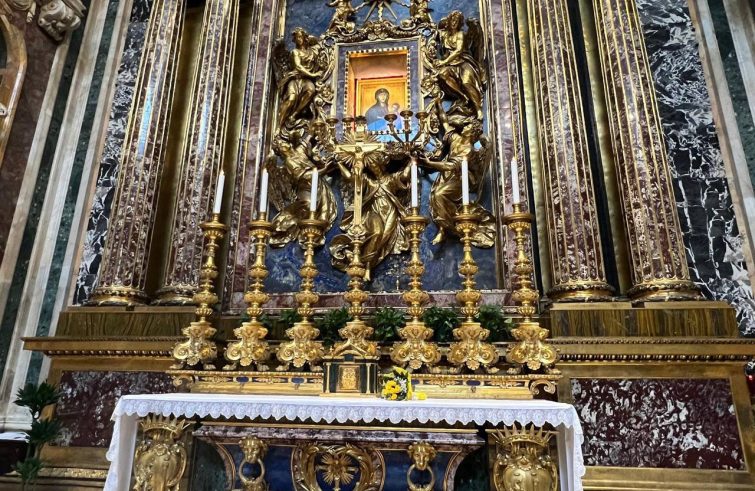 Prima di far rientro a Casa Santa Marta, il Papa è andato nella basilica di Santa Maria Maggiore, come è solito fare anche prima e dopo ogni viaggio apostolico, per ritirarsi qualche attimo in preghiera davanti all’icona, da lui molto venerata, della Salus Populi Romani. La cinquecento con a bordo il Santo Padre, in realtà, partita dal Policlinico Gemelli era arrivata già in prossimità dell’Arco del Perugino, e quindi della residenza papale, ma con una sterzata improvvisa e fuori programma – forse voluta proprio da Papa Francesco stesso – è tornata su via di Porta Cavalleggeri ha imboccato il tunnel per dirigersi alla basilica papale. Il Papa ha consegnato al card. Makrickas dei fiori da porre davanti all’icona della Vergine Salus Populi Romani.