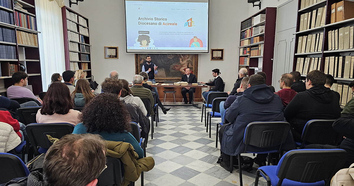 Presentato ieri, venerdì 28 marzo nell’Archivio storico diocesano di Acireale, il progetto “Cultura e patrimonio storico protetti dall’innovazione digitale: l’identità culturale si rinnova”, per la digitalizzazione di documenti storici dal XV al XX secolo, testimonianze della storia locale e delle sue trasformazioni sociali ed economiche, in questo modo preservati e resi accessibili. Il progetto è stato promosso dalla Fondazione Città del fanciullo Acireale Ets e finanziato dall’Unione europea attraverso il Next Generation Eu – Pnrr transizione digitale organismi culturali e creativi. I registri sacramentali, i censimenti storici e i documenti amministrativi possono essere consultati attraverso una piattaforma digitale, sviluppata appositamente per facilitare l’accesso ai contenuti. Questo strumento innovativo consente a studiosi, ricercatori e appassionati di esplorare il patrimonio documentale in modo semplice e intuitivo, superando i limiti imposti dalla consultazione fisica. “La digitalizzazione non è solo una necessità, ma una missione per trasmettere la nostra memoria storica alle generazioni future”, sono state le parole di mons. Antonino Raspanti, vescovo di Acireale, presente all’evento assieme a mons. Giovanni Mammino, direttore dell’Archivio storico, che ha messo in risalto il ruolo dei giovani, in particolare di Sebastiano Monaco e degli studenti del liceo Archimede di Acireale, nello sviluppare la nuova piattaforma e sensibilizzare sull’importanza dei documenti storici. Intervenuti alla presentazione anche Luca Milazzo, project manager Morpheos,  gli studenti del liceo Archimede accompagnati dai docenti Felicia Cutolo e Gabriella Giaquinta, e Marta Ferrantelli, coordinatrice del progetto.