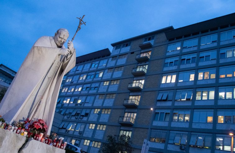 “Nella giornata odierna le condizioni cliniche del Santo Padre si sono mantenute stabili”. È quanto risulta dal bollettino medico diffuso dalla Sala Stampa della Santa Sede al termine del diciannovesimo giorno di degenza di Papa Francesco al Policlinico Gemelli per una polmonite bilaterale. Il Santo Padre, inoltre, “non ha presentato episodi di insufficienza respiratoria, né broncospasmo. È rimasto apiretico, sempre vigile, collaborante alle terapie e orientato. Questa mattina è passato alla ossigenoterapia ad alti flussi ed ha eseguito la fisioterapia respiratoria”. “Questa notte, come programmato, verrà ripresa la ventilazione meccanica non invasiva fino a domani mattina”, la novità del bollettino odierno. “La prognosi rimane riservata”. Durante la giornata, il Papa “ha alternato preghiera e riposo e questa mattina ha ricevuto l’Eucarestia”.