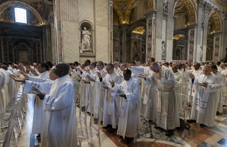 “Bando alla disperazione! Restituzione, invece, e remissione dei debiti; ridistribuzione di responsabilità e di risorse: il popolo di Dio si attende questo. Vuole partecipare e, in forza del battesimo, è un grande popolo sacerdotale”. Così il Papa, nell’omelia da lui preparata per la Messa del Crisma e letta dal card. Domenico Calcagno, presidente dell’Apsa, sintetizza il legame tra la vocazione sacerdotale e l’Anno giubilare. “Gli oli che in questa solenne celebrazione consacriamo sono per la sua consolazione e la gioia messianica”, ricorda Francesco: “Il campo è il mondo”. “La nostra casa comune, tanto ferita, e la fraternità umana, così negata, ma incancellabile, ci chiamano a scelte di campo”, l’invito del Papa: “Il raccolto di Dio è per tutti: un campo vivo, in cui cresce cento volte più di quello che si è seminato”. “Cari fedeli, popolo della speranza, pregate oggi per la gioia dei sacerdoti”, l’esortazione finale: “Venga a voi la liberazione promessa dalle Scritture e alimentata dai Sacramenti. Molte paure ci abitano e tremende ingiustizie ci circondano, ma un mondo nuovo è già sorto. Dio ha tanto amato il mondo da dare noi il suo Figlio, Gesù. Egli unge le nostre ferite e asciuga le nostre lacrime”.