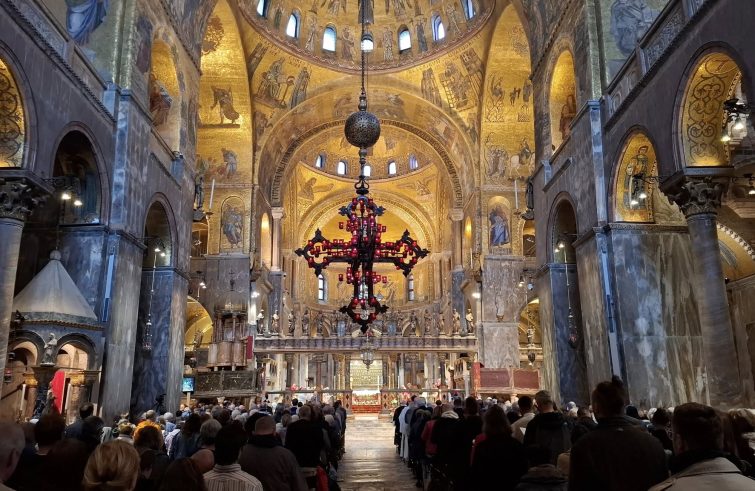 “Quest’anno viviamo la festa – che il calendario posiziona all’interno dell’Ottava di Pasqua – nei giorni del cordoglio e del lutto per la morte del Santo Padre Francesco a cui domattina, in Piazza San Pietro, verrà dato l’ultimo saluto terreno con la S. Messa esequiale”. Così il patriarca di Venezia Francesco Moraglia, nell’omelia della messa solenne per le festività del Santo Evangelista Marco presieduta ieri mattina nella basilica cattedrale veneziana che ne custodisce le reliquie. “Mi piace ricordare – ha proseguito – che proprio un anno fa, al termine della sua visita a Venezia, Papa Francesco ha sostato qui davanti all’altare – per alcuni momenti di silenziosa e intensa preghiera – davanti alle spoglie dell’evangelista Marco”. “Anche chi ha letto poco del suo Vangelo – il più antico per composizione e vivace di stile – conosce, però, il famoso motto che campeggia sul leone alato: ‘Pax tibi Marce evangelista meus’”. Di qui la sottolineatura dell’impegno costante di Papa Francesco, “condotto fino alla fine, a favore della pace a cui ha dedicato il suo ultimo intervento pubblico, il Messaggio Urbi et Orbi di domenica scorsa, Pasqua di Risurrezione”. Secondo il patriarca di Venezia, tra i fattori che allontanano la pace vi è la non-verità: “Un esempio di manipolazione del linguaggio è anche invadere uno Stato sovrano, negando poi che si sta combattendo una guerra ma dichiarando che è in atto un’operazione speciale. Se ogni ‘non-verità’ aiuta e alimenta la guerra, allora la pace ha bisogno della verità e della sincerità di tutti e il coraggio di intraprendere un cammino comune, condotto secondo verità e verso la verità perché – la conclusione di Moraglia – solo la verità illumina e spiana le vie della pace, solo la verità rafforza i mezzi e le risorse umane che conducono alla pace”.