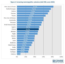 Sono i dati del Report 2023 dell’Osservatorio nazionale screening (Ons) – network che monitora gli screening oncologici offerti dal Ssn – commentati dalla Fondazione Gimbe. “Adesioni ancora troppo basse e profonde diseguaglianze territoriali – dichiara Nino Cartabellotta, presidente della Fondazione – mettono a rischio lo strumento più efficace per la diagnosi precoce dei tumori”. “Complessivamente – afferma Cartabellotta – nel 2023 quasi 16 milioni di persone sono state invitate ad eseguire un test di screening, ma solo 6,9 milioni hanno aderito, con marcate differenze di adesione sia fra i tre programmi sia, soprattutto, tra Regioni e macro-aree del Paese”. Gli screening oncologici inclusi nei Lea, che tutte le Regioni sono tenute a offrire gratuitamente, prevedono: la mammografia per le donne tra i 50 ed i 69 anni (in alcune regioni non sottoposte a piani di rientro estesa alle donne tra i 45-49 anni e i 70-74); lo screening del tumore della cervice uterina per le donne tra i 25 ed i 64 anni; e quello colon-rettale per donne e uomini tra i 50 ed i 69 anni (in alcune regioni anche nella fascia 70-74). Il report dell’Ons riporta numerosi indicatori utili a valutare la qualità del processo di erogazione degli screening, che presenta un’elevata variabilità tra Regioni in termini di modalità di invito, strategie di recupero e, soprattutto, coperture della popolazione target. “Se da un lato i dati Ons 2023 – aggiunge Cartabellotta – mostrano il trend in crescita sia degli inviti che della copertura della popolazione, siamo ancora molto lontani dall’obiettivo fissato nel 2022 dal Consiglio europeo: garantire entro il 2025 una copertura degli screening oncologici ad almeno il 90% della popolazione target”. Queste le diagnosi mancate nel 2023: circa 10.900 carcinomi della mammella, di cui quasi 2.400 invasivi di piccole dimensioni; quasi 10.300 lesioni pre-cancerose del collo dell’utero; per il colon-retto oltre 5.200 tumori e quasi 24.700 adenomi avanzati. Complessivamente si tratta di oltre 50 mila lesioni la cui identificazione avrebbe consentito di avviare il percorso per una diagnosi precoce e, ove necessario, per una terapia efficace. “Prevenzione e promozione della salute – conclude il presidente Gimbe – rappresentano i pilastri per ridurre l’incidenza delle malattie e contribuire alla sostenibilità del Ssn. Ma oggi il paradosso è evidente: da un lato i cittadini sono in lista di attesa per esami diagnostici non sempre appropriati, dall’altro sono in milioni a non aderire ai programmi di screening organizzati”.