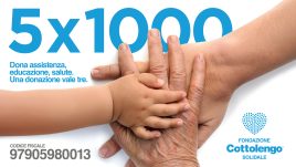 Nella nuova campagna di comunicazione del 5×1000 sono raffigurate tre mani di età diverse che si ritrovano simbolicamente unite a rappresentare le tre principali aree di intervento della Fondazione: assistenza, educazione, salute con la presenza del Santo Cottolengo in tutti i diversi momenti della vita. Il messaggio è chiaro e diretto: “Il tuo 5×1000 vale tre”.