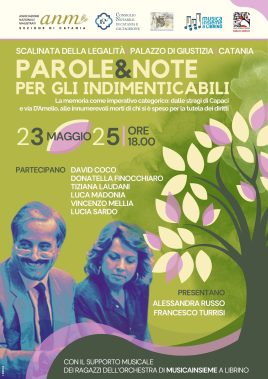 Catania ricorda la strage di Capaci. E lo fa con la forza della parola e con l’emozione della musica, per trasformare la memoria in coscienza collettiva e azione concreta. Nel giorno in cui ricorre l’anniversario della strage di Capaci (23 maggio 1992) – una delle ferite più profonde del Paese – la Sezione di Catania dell’Associazione nazionale magistrati, in collaborazione con il Consiglio notarile dei Distretti riuniti di Catania e Caltagirone, il Consiglio dell’Ordine degli avvocati di Catania, l’associazione MusicaInsieme a Librino e l’Istituto d’arte Emilio Greco, promuove “Parole & note per gli indimenticabili”, un evento che unisce arti, istituzioni e cittadinanza per onorare il ricordo e rinnovare l’impegno.