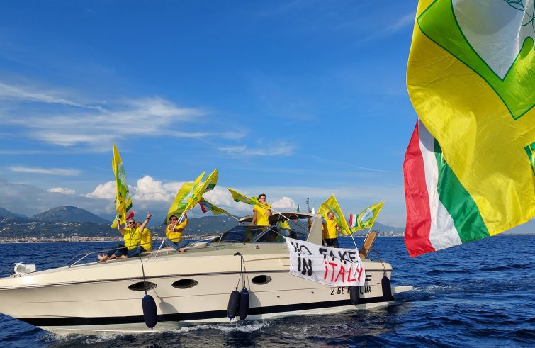 Lo slogan “Senza reciprocità da qui non si passa!” ha accompagnato l’azione degli attivisti che a bordo di numerose imbarcazioni hanno circondato la nave proveniente dall’Africa. “Non vogliamo frutta e verdura coltivata all’estero con regole diverse – hanno ribadito – che poi arriva in Italia e si trasforma magicamente in Made in Italy!”.
