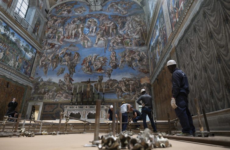 La Cappella Sistina si sta preparando ad accogliere i 133 cardinali che da mercoledì prossimo, 7 maggio, si riuniranno sotto lo sguardo vigile del Giudizio Universale di Michelangelo per eleggere il 267° successore di Pietro. La Santa Sede ha diffuso oggi le immagini esclusive, con video allegato, che documentano i preparativi necessari alla trasformazione della sede per il Conclave ormai imminente. Operai e restauratori sono infatti al lavoro per accogliere i 133 cardinali elettori chiamati a scegliere il nome del nuovo Papa. Lavori in corso anche per la sistemazione degli alloggi cardinalizi a Santa Marta e in luoghi limitrofi, dove dovranno trovare posto i porporati “in eccesso”, rispetto al limite di 120 cardinali elettori stabilito da Paolo VI, che corrisponde esattamente al numero di stanze a disposizione della residenza scelta come abitazione da Papa Francesco lungo i suoi dodici anni di pontificato. Gli alloggi cardinalizi verranno assegnati tramite un sorteggio.