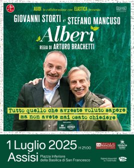 Dopo l’anteprima dell’8 giugno con Simone Cristicchi e il suo spettacolo “Franciscus. Il folle che parlava agli uccelli”, martedì 1° luglio il Cortile di Francesco ospiterà un nuovo straordinario evento in collaborazione con Umbria Green Festival. Giovanni Storti e Stefano Mancuso si esibiranno in anteprima nazionale nella fantastica cornice della Piazza inferiore di San Francesco con il nuovo spettacolo “Alberi. Tutto quello che avreste voluto sapere ma non avete mai osato chiedere”, con la regia di Arturo Brachetti.