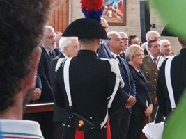 Presenti alle esequie, tra gli altri, il presidente della Repubblica, Sergio Mattarella, e della Regione Puglia, Michele Emiliano, il ministro della Difesa, Guido Crosetto, il ministro degli Interni, Matteo Piantedosi, e il sindaco di Francavilla Fontana, Antonello Denuzzo.