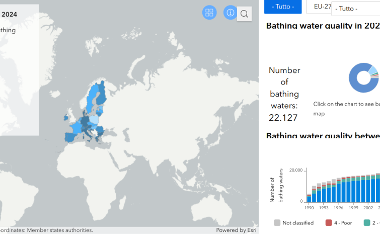 Ci si può tuffare senza problemi nei mari europei, così come nelle acque balneabili interne: la conferma arriva oggi dalla Commissione europea che ha pubblicato i risultati delle valutazioni compiute dall’Agenzia europea dell’ambiente su oltre 22.000 siti di balneazione in tutti i 27 Stati membri dell’Ue (stagione 2024), in base a due parametri microbiologici (Escherichia coli ed enterococchi intestinali). Oltre l’85% dei siti monitorati corrisponde in modo “eccellente” agli standard di qualità, ed è comunque il 96% che soddisfa gli standard minimi. La valutazione italiana è positiva per il 98% delle acque; solo l’1,3% non sarebbe balneabile. L’agenzia ha messo a disposizione le valutazioni nazionali e una mappa interattiva, dove si può verificare se le acque dove ci si vuole bagnare sono idonee, rispetto al monitoraggio dei batteri che possono causare malattie potenzialmente gravi. La qualità delle acque di balneazione costiere è generalmente migliore di quella di fiumi e laghi. Nel 2024, circa l’89% delle acque di balneazione costiere nell’Ue è stato classificato come eccellente, rispetto al 78% delle acque di balneazione interne. Si badi, specifica la nota, che se sono ottime le condizioni dal punto di vista batteriologico, l’inquinamento chimico delle acque superficiali e sotterranee rimane significativo, mentre altri fenomeni, come le fioriture di cianobatteri tossici, non rientrano nel monitoraggio previsto dalle norme Ue sulle acque di balneazione.
