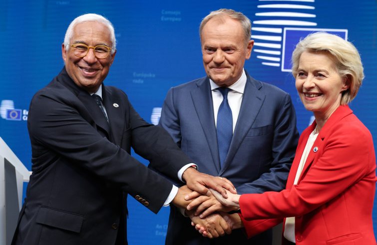 (Bruxelles) “Contesto di grave volatilità geopolitica e geoeconomica”. Così Ursula von der Leyen (nella foto con Antonio Costa e Donald Tusk) definisce la difficile fase che si sta attraversando entro al quale l’Ue è chiamata a decisioni di grande rilevanza. Commentando gli esiti del Consiglio europeo, dice: “Innanzitutto, abbiamo discusso della difesa europea. Il nostro piano Defence Readiness 2030 definisce una tabella di marcia. Il piano ReArm Europe stabilisce gli strumenti per realizzare il necessario aumento degli investimenti. 16 Stati membri hanno richiesto l’attivazione della clausola di salvaguardia nazionale. Ciò consentirà loro un aumento sostanziale della spesa per la difesa senza innescare una procedura per i disavanzi eccessivi”. È stato inoltre approvato il regolamento Safe. 10 Stati membri hanno già manifestato la loro intenzione di ricorrere ai prestiti Safe. Mi aspetto che altri aderiscano. Ma non si tratta solo di quanto spendiamo, ma di come spendiamo. Stiamo costruendo un autentico mercato europeo per i materiali di difesa, incentrato su scala, interoperabilità ed efficienza”. È la stessa presidente della Commissione a riconoscere che ReArm consentirà “di accelerare le procedure di autorizzazione per l’industria della difesa, di ottenere deroghe ambientali e di semplificare le norme sugli aiuti di Stato”.