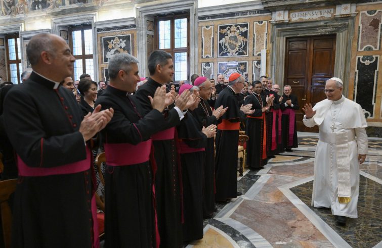 “Questo luogo non sia inquinato da ambizioni o antagonismi; siate, invece, una vera comunità di fede e di carità, di fratelli e di figli del Papa, che si spendono generosamente per il bene della Chiesa”. È l’appello con cui il Papa, riprendendo le parole di Paolo VI alla Curia Romana, pronunciate il 21 settembre 1963, ha concluso il suo discorso alla Segreteria di Stato, ricevuta oggi in udienza e alla quale ha espresso “vicinanza e gratitudine”. “Grazie per le competenze che mettete a disposizione della Chiesa, per il vostro lavoro quasi sempre nascosto e per lo spirito evangelico che lo ispira”, l’omaggio di Leone XIV ai presenti.