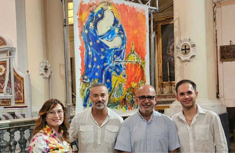 È stata presentata sabato, nel corso dell’evento “Con Maria, pellegrini di speranza”, ispirato alla Bolla d’indizione del Giubileo Spes non confundit di Papa Francesco, che si è svolto basilica di San Filippo di Agira, ad Aci San Filippo, la tela “pellegrina”, raffigurante la Vergine Maria, realizzata dall’artista Massimiliano Ferragina. La serata si è svolta in un clima di raccoglimento e partecipazione, intrecciando preghiera, riflessione e arte.