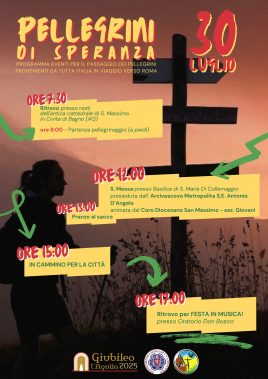 Il Giubileo dei giovani 2025 si svolgerà a Roma dal 28 luglio al 3 agosto. Circa duemilacinquecento giovani transiteranno per L’Aquila, in particolar modo nella basilica di S. Maria di Collemaggio, in viaggio verso Roma per celebrare il Giubileo dei giovani con Leone XIV.