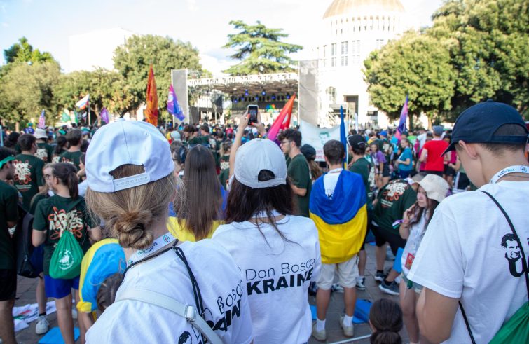 Dopo la cena in piazza i 5.000 giovani appartenenti al Mgs, di cui 110 dall’Ucraina, hanno vissuto un momento di spiritualità e veglia eucaristica animata da don Rafael Bejarano, consigliere generale per la Pastorale giovanile dei Salesiani di Don Bosco, seguita dalla tradizionale “buonanotte” del rettor maggiore dei Salesiani, don Fabio Attard, e della madre generale delle Figlie di Maria Ausiliatrice, suor Chiara Cazzuola, presenti durante l’intero Festival.