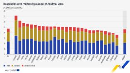 Nel 2024, nell’Ue si contavano quasi 202 milioni di nuclei familiari. Poco meno di un quarto di questi (23,6%) includeva bambini, mentre il 76,4% non ne aveva. Il dato emerge dall’ultima indagine di Eurostat pubblicata oggi. “Le percentuali più elevate di famiglie con bambini si registravano in Slovacchia (35,6%), Irlanda (31,0%) e Cipro (28,6%). Al contrario, le percentuali più basse si registravano in Finlandia (18,0%), Lituania (19,6%) e Germania (20,1%)”. Sempre nel 2024, quasi la metà (49,8%) delle famiglie con bambini nell’Ue aveva 1 figlio, il 37,6% ne aveva 2 e il 12,6% ne aveva 3 o più. “Le famiglie con un figlio erano predominanti in tutti i paesi dell’Ue, fatta eccezione per i Paesi Bassi, dove la quota di famiglie con due figli era più elevata”. Le famiglie con tre o più figli erano le meno comuni in tutti i Paesi dell’Ue. La loro percentuale tra tutte le famiglie con figli variava dal 20,6% in Irlanda, al 18,1% in Svezia e al 17,4% in Finlandia, al 6,2% in Portogallo, al 6,4% in Bulgaria e al 7,6% in Italia.