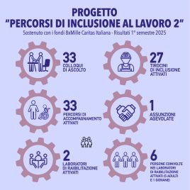 Nel primo semestre 2025 sono state ascoltate ed accompagnante 33 persone e sono stati attivati 27 tirocini di inclusione ed una persona è stata assunta con contratto. La direttrice della Caritas diocesana, Barbara Moschettoni, evidenzia come “l’impegno della Caritas sia rivolto a tutto il tutto il territorio della diocesi con attenzione anche alla zona montana ed all’entroterra, dove si registrano minori opportunità”.