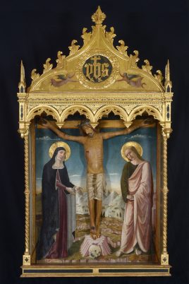 Il restauro si è svolto con il sostegno dei fondi dell’8xmille alla Chiesa cattolica. “L’intervento ha riguardato sia la complessa struttura lignea del Tabernacolo – gravemente compromessa da fessurazioni, deformazioni e sollevamenti degli strati pittorici – sia il prezioso Cristo ligneo snodabile (ben più antico dell’impianto pittorico), autentico unicum devozionale che in passato permetteva di rappresentare le due principali posture della Passione: il Crocifisso e il Cristo deposto”.