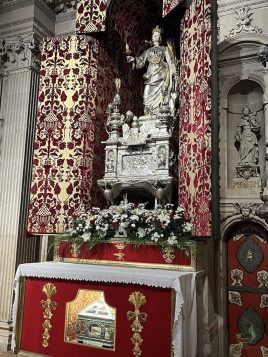 È in programma domani, domenica 10 agosto, nella cattedrale di Siracusa, l’esposizione straordinaria del simulacro di Santa Lucia. L’apertura della nicchia che custodisce il simulacro è prevista per le ore 8. Le messe saranno celebrate subito dopo l’apertura della nicchia e anche alle ore 11,30 e alle ore 19. Terminata l’ultima messa la nicchia verrà chiusa. La deputazione della cappella di Santa Lucia ha deciso di effettuare le aperture straordinarie nei mesi di luglio e agosto, per dare la possibilità ai tanti siracusani che vivono fuori dalla città e tornano per le ferie, oltre che ai turisti, di pregare davanti al simulacro della patrona. “Rinnoviamo una tradizione che vuole ricordarci che Gesù non va in ferie – le parole di Sebastiano Ricupero, presidente della deputazione della cappella di Santa Lucia – apriamo la nicchia e Lucia si apre alla nostra preghiera. Proprio nel periodo in cui pensiamo di essere più liberi, senza i nostri impegni quotidiani, non dimentichiamo mai di pregare con Lucia e per Lucia”.