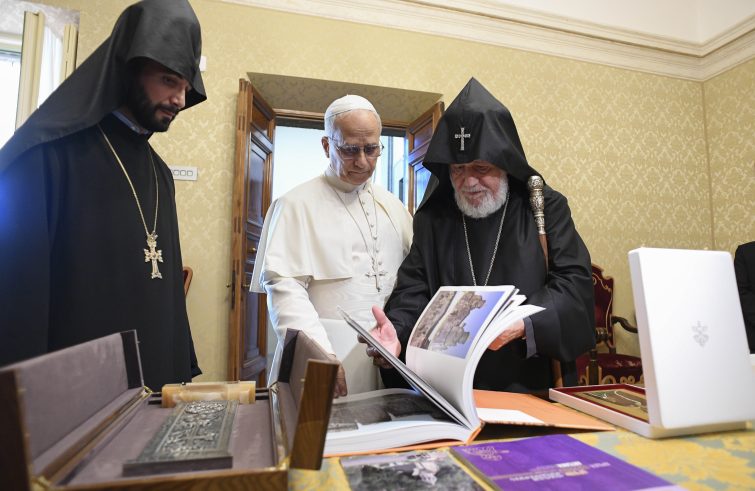 Il Papa ha ricevuto oggi a Castel Gandolfo Sua Santità Karekin II, Patriarca Supremo e Catholicos di Tutti gli Armeni, con il suo seguito, tra cui il card. Kurt Koch, Prefetto del Dicastero per la Promozione dell’Unità dei Cristiani. La visita era prevista tra le attività papali, ma senza l’indicazione del luogo, ed è stata confermata dalle foto diffuse da Vatican Media.