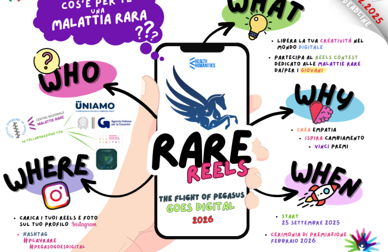 Il contest, promosso dal laboratorio di Health Humanities del Centro nazionale malattie rare (www.iss.it/health-humanities), in collaborazione con Uniamo Federazione italiana malattie rare, Agenzia italiana per la gioventù, European Grants International Academy e network della Creative Skills Week, rappresenta l’evoluzione del concorso letterario, artistico e musicale “Il Volo di Pegaso”, promosso dall’Istituto superiore di sanità, con l’obiettivo di fornire spazi espressivi alle persone con malattie rare, ai loro familiari e ai professionisti sanitari coinvolti e diffondere la conoscenza del complesso mondo costituito da queste patologie.