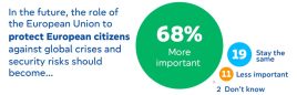 Sicurezza, ma anche lotta alla povertà, controllo dell’inflazione, opportunità di lavoro. L’ultimo sondaggio Eurobarometro, commissionato dal Parlamento europeo, condotto a maggio intervistando oltre 26mila cittadini Ue, offre chiavi di lettura differenti. “Il 68% dei cittadini vuole che l’Unione assuma un ruolo più importante nella protezione dalle crisi internazionali”, segnalano gli esperti. “La quasi totalità dei cittadini chiede agli Stati membri di affrontare insieme le sfide globali attuali (90%) e una forte maggioranza ritiene che l’Unione europea abbia bisogno di più mezzi per prevalere in un panorama geopolitico in rapida evoluzione (77%)”. Per rafforzare la propria posizione nel mondo, l’Ue “dovrebbe comunque concentrarsi sulla difesa e sulla sicurezza (37%), così come sulla competitività, sull’economia e sull’industria (32%)”. A proposito di bilancio e spese, “per investire in ciò che conta, il 78% dei cittadini ritiene che l’Ue dovrebbe finanziare un maggior numero di progetti e il 91% afferma che il Parlamento europeo dovrebbe disporre di informazioni e mezzi adeguati a controllare la spesa Ue”. Quasi tre intervistati su quattro affermano che le azioni Ue hanno un impatto sulla loro vita quotidiana (72%): la metà lo considera “positivo” (50%) un dato che sale al 63% tra gli intervistati italiani.