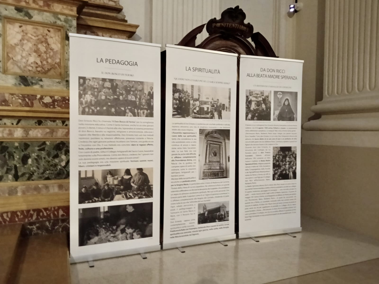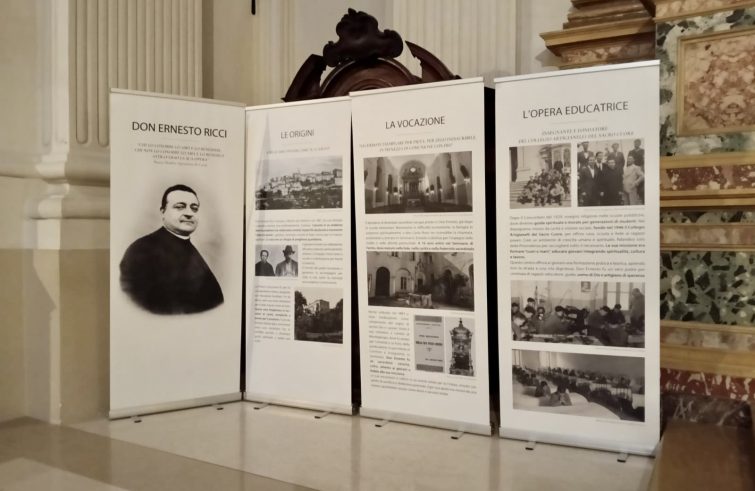 Nel 75° anniversario della morte di don Ernesto Ricci, sacerdote fermano e fondatore del Centro di formazione professionale “Artigianelli”, l’arcidiocesi di Fermo promuove una mostra allestita nella cattedrale in occasione del settenario della Madonna del Pianto, dal titolo “Maria Regina dei Santi”. Sette pannelli, realizzati dagli studenti, raccontano la vita, le opere, la spiritualità e l’intuizione educativa del sacerdote, chiamato il “don Bosco di Fermo” per la sua attenzione ai giovani e per aver dato vita, circa 80 anni fa, a una scuola che ancora oggi forma i giovani al lavoro. La mostra, che richiama anche la profonda devozione mariana di don Ernesto Ricci, è visitabile fino a venerdì 23 gennaio 2026.