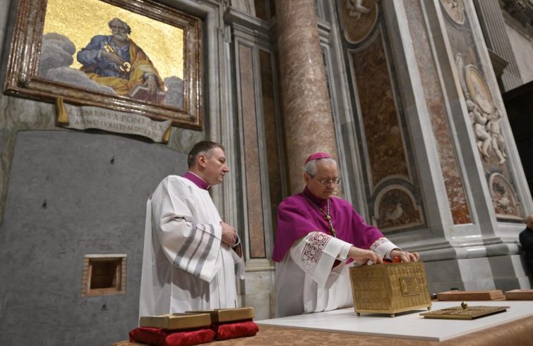 È stata murata ieri sera la Porta Santa della Basilica di San Pietro, aperta in occasione del Giubileo ordinario 2025. Il rito è stato presieduto dal card. Mauro Gambetti, arciprete della Basilica vaticana, alla presenza dell’arcivescovo Diego Giovanni Ravelli, maestro delle celebrazioni liturgiche pontificie. I sampietrini della Fabbrica di San Pietro hanno costruito il muro, composto da circa 3.200 mattoni, per sigillare la Porta Santa. All’interno è stata inserita una capsa di bronzo, sulla quale sono incisi gli stemmi di Papa Francesco, che ha aperto l’Anno Santo, e di Papa Leone XIV, che lo ha chiuso. Nel cofanetto sono stati deposti la chiave della Porta Santa, la pergamena che attesta l’apertura e la chiusura, due medaglie del primo anno di pontificato di Papa Leone XIV, una medaglia corrispondente all’ultimo anno di pontificato di Papa Francesco, altre medaglie in ricordo dei dieci anni intercorsi tra il Giubileo della Misericordia del 2016 e il 2025, e una medaglia della Sede vacante 2025. La capsa è stata poi collocata in un contenitore di piombo, saldato e sigillato. Nella breve preghiera iniziale il card. Gambetti ha pregato per i pellegrini che durante l’Anno Santo hanno varcato la Porta Santa, perché rimangano saldi nella fede e nella comunione con il Successore di Pietro. Il rito si è concluso con il Padre nostro e la benedizione.