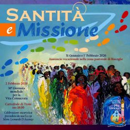 Il cammino proposto si inserisce nel contesto delle celebrazioni per la Giornata mondiale per la vita consacrata, che ricorre il 2 febbraio. In questa occasione, la Chiesa diocesana si ritroverà nella cattedrale di Trani per un momento culminante di comunione e preghiera. Alle 18 è prevista la celebrazione eucaristica, presieduta da mons. Leonardo D’Ascenzo, arcivescovo di Trani-Barletta-Bisceglie.