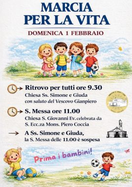 Si svolgerà domenica 1 febbraio, nel quartiere Monticelli di Ascoli Piceno, la Marcia per la vita, iniziativa promossa dalle parrocchie dei Santi Simone e Giuda e di San Giovanni Evangelista per celebrare la 48ª Giornata nazionale per la vita e testimoniare la gioia della vita nei luoghi in cui essa è maggiormente messa alla prova. L’evento, organizzato dai parroci don Giampiero Cinelli e don Orlando Crocetti con il coinvolgimento delle associazioni parrocchiali, dell’Azione cattolica, del Movimento diocesano e del gruppo scout, prenderà avvio alle ore 9,30 con il raduno davanti alla chiesa dei Santi Simone e Giuda, dove il vescovo di Ascoli Piceno, mons. Gianpiero Palmieri, rivolgerà un saluto ai partecipanti, leggerà il messaggio per la Giornata nazionale per la vita e impartirà la benedizione. Alle ore 10 è prevista una prima sosta di preghiera davanti alla casa di cura Villa San Giuseppe, seguita alle ore 10,30 da una seconda sosta presso l’ospedale “C.G. Mazzoni” di Monticelli. La marcia si concluderà alle ore 11 con l’arrivo alla chiesa di San Giovanni Evangelista, dove mons. Piero Coccia, vescovo emerito di Pesaro, presiederà la messa. Al termine, nel piazzale della chiesa, verranno fatti volare palloncini contenenti messaggi di gioia e di speranza.