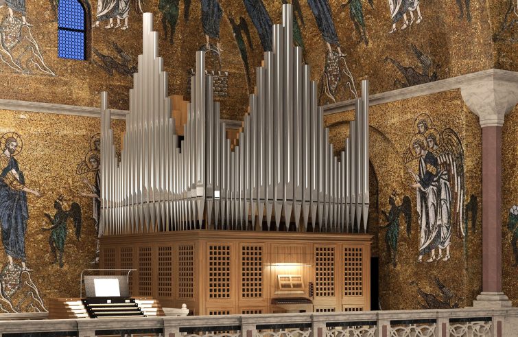 Alla presenza del patriarca, del primo procuratore Bruno Barel, del primo organista Alvise Mason e dei maestri organari Philipp Klais e Francesco Zanin, è stato firmato l’accordo con le ditte Klais Orgelbau di Bonn e Zanin Organi di Codroipo. Il progetto, di portata internazionale, prevede quattro sezioni strumentali collocate in punti strategici della basilica per un’esperienza acustica immersiva: l’organo principale in Cornu Evangelii, una sezione solistica in Cornu Epistulae e due nei bracci del transetto.