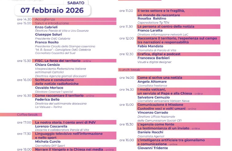 “Fare giornalismo, se fatto bene, è una delle cose più belle del mondo”. Lo ha detto don Enzo Gabrieli, direttore di Parola di Vita, introducendo il quarto corso di giornalismo del Settimanale diocesano, in corso nel palazzo arcivescovile a Cosenza. Oltre 70 i partecipanti all’iniziativa di formazione, dal titolo “Per continuare a essere voce. Impariamo a scrivere…per farci leggere”. “Parola di Vita è stata da sempre una fucina per i giovani del territorio, che in questi anni si sono collocati nel panorama nazionale e locale”, ha detto don Gabrieli. “Il nostro è un servizio pastorale. Siamo animatori della cultura e della comunicazione, secondo le indicazioni della Chiesa nazionale e nella grande famiglia della Federazione italiana settimanali cattolici (Fisc). La gente abita il mondo della comunicazione e il continente digitale, vive questo ambiente e come Chiesa siamo in ritardo, annaspiamo o scopiazziamo. Per questo dobbiamo formarci, così da essere incisivi secondo la nostra vocazione cristiana”. Per il direttore, “la forza della Chiesa è l’essere una grande famiglia, anche nel mondo della comunicazione: abbiamo tante competenze nei media laici e cattolici, e come Settimanali possiamo attingere a un tesoro grande”. Il corso, che termina domani pomeriggio, vede tra i relatori Andrea Monda, direttore dell’Osservatore Romano, Salvatore Cernuzio di Vatican News, Vincenzo Corrado, direttore dell’Ufficio comunicazioni sociali della Cei, Giovanni Tridente, della Pontificia università Santa Croce, Michela Curcio di Sky sport.