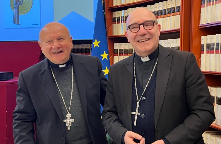 “Ho un po’ di paura di arrivare ad Assisi, sicuramente meno di quanta ne ho provata una decina di anni fa arrivando a Benevento per la prima volta, ma essere vescovo ad Assisi non è lo stesso che essere uno studioso di San Francesco. Sicuramente le fonti sono un ausilio, ma confido nel buon Dio e anche nelle persone che troverò. Sono convinto che – come a Benevento – Dio mi sarà vicino e troverò persone buone che mi aiuteranno. Mi auguro di esserne degno e al Signore chiedo che mi aiuti a non fare guai troppo grossi; che non mi tolga mai il sorriso; e che mi aiuti a stare sereno. Queste cose gliele ho chieste anche dieci anni fa e spero mi aiuti anche per la seconda parte del mio ministero episcopale”. Lo ha detto il vescovo eletto di Assisi-Nocera Umbra-Gualdo Tadino e di Foligno, mons. Felice Accrocca, al termine della presentazione del libro “Il cuore nascosto del Cantico, da sora Morte a Frate Sole, san Francesco e le strofe del vescovado”, scritto da mons. Domenico Sorrentino, amministratore apostolico delle diocesi di Assisi-Nocera Umbra-Gualdo Tadino e di Foligno. L’evento, che si è svolto ieri nella sala del Refettorio di Palazzo Mancuso a Roma, è stato quasi un passaggio di consegne ideale tra i due pastori nel segno di San Francesco; passaggio nella guida delle due diocesi che avverrà ufficialmente con la celebrazione del 25 marzo nella cattedrale di San Rufino ad Assisi e il 28 in quella di Foligno.