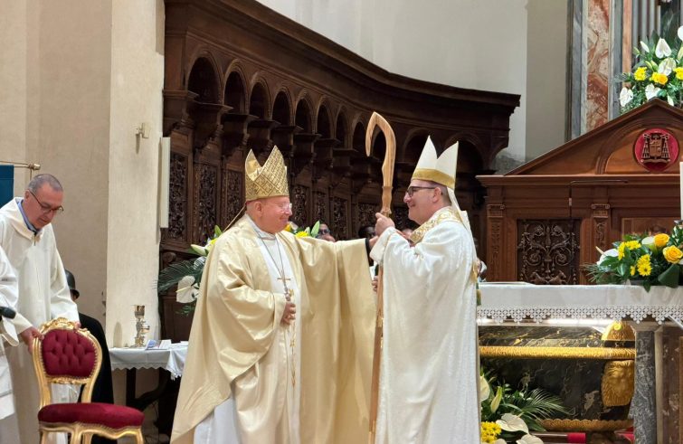 “Dico a noi tutti, autorità civili, religiose e confratelli: lavoriamo insieme perché il sogno della pace si avveri. Questo ci aiuterà a trovare vie e percorsi di vita pastorale che abbiano, su questo tema, dei cardini fondanti. Il Signore ci aiuti, la Vergine santa ci sostenga e interceda per noi e con lei intercedano dal cielo i nostri Santi”. È stato l’appello finale dell’omelia di mons. Felice Accrocca, nuovo vescovo di Assisi- Nocera Umbra-Gualdo Tadino, eri sera in occasione dell’insediamento in diocesi. Nella cattedrale di San Rufino il passaggio di consegne – con lo scambio del pastorale – tra mons. Domenico Sorrentino, amministratore apostolico della diocesi, e il nuovo pastore.