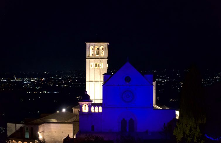 Anche quest’anno, in occasione della Giornata mondiale della consapevolezza sull’autismo del 2 aprile, la facciata della chiesa superiore della basilica di San Francesco in Assisi si illumina di blu, fino a mercoledì 1° aprile, rinnovando l’adesione dei frati del Sacro Convento alla campagna mondiale di sensibilizzazione “Light it up blue”. L’iniziativa è promossa da Angsa Umbria (Associazione nazionale Genitori soggetti autistici Umbria onlus) e ha per obiettivo la sensibilizzazione e l’educazione della cittadinanza alla consapevolezza e alla conoscenza dei disturbi dello spettro autistico.