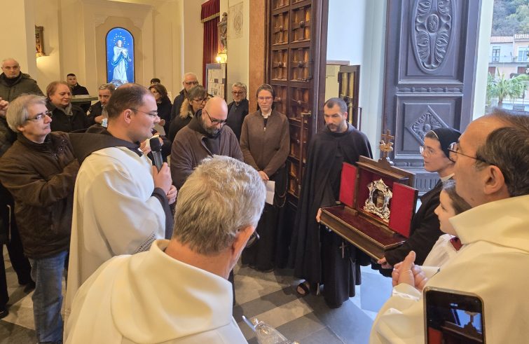 Un simbolo che “ci ricorda l’esperienza di Francesco d’Assisi e quella di ognuno di noi”, ha detto fra Loricchio, parlando della vita del Poverello come “quella di questa terra che custodiamo come reliquia: una terra semplice, povera, che posta in mani sapienti diventa qualcosa di bello e di buono. Francesco, nelle mani di Dio, è stato come questa terra, che si lascia plasmare e rinnovare continuamente. Anche noi siamo terra, anche noi facciamo l’esperienza della nostra fragilità che ci fa stare male, che ci frustra. Ma Francesco è qui a ricordarci che il problema non è cadere e finire con la faccia a terra, ma riconoscere che la nostra terra, la nostra umanità, è custodita e continuamente trasformata dalle mani di Dio”. Quindi l’augurio che “come in tutte le chiese diocesane d’Italia, anche in questa chiesa, che già si è distinta per una bella e partecipata accoglienza, l’incontro con Francesco possa essere occasione per ritornare al Signore e fare esperienza di Lui”. Al momento di accoglienza, è seguita la celebrazione eucaristica e il primo momento di venerazione della reliquia a cura del gruppo Carlo Acutis.