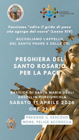 Il vescovo delle diocesi di Assisi–Nocera Umbra–Gualdo Tadino e di Foligno, mons. Felice Accrocca, presiederà sabato 11 aprile alle ore 21,15 nella basilica di Santa Maria degli Angeli il Rosario per la pace, in comunione con la veglia indetta da Papa Leone XIV a Roma nella basilica di San Pietro. L’iniziativa coinvolgerà la comunità diocesana e le Famiglie francescane, che si ritroveranno presso la Porziuncola per unirsi alla preghiera e invocare la fine dei conflitti nel mondo. “Da questa città santa vogliamo elevare con forza la nostra preghiera e il nostro appello per la pace”, afferma mons. Accrocca, richiamando l’urgenza di un cessate il fuoco e di un ritorno al dialogo. “Tacciano le armi e tutti coloro che hanno il potere di decidere sulla vita altrui ricordino le parole di San Francesco nella Lettera ai reggitori dei popoli: ‘Pensate che il giorno della vostra morte arriva’”.