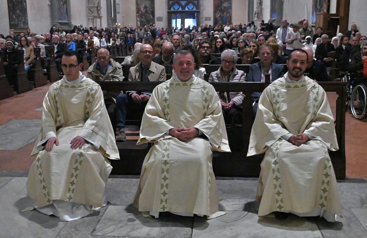 Nel giorno della Domenica in albis l’arcivescovo di Pisa, mons. Saverio Cannistrà, ha ordinato tre nuovi diaconi: Alessandro Baroni, 26 anni, originario di Casciavola, Michele Lazzerini, 59 anni, originario di Uliveto Terme, e Giacomo Liberto, 38 anni, originario di Calcinaia.