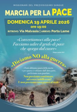 Si terrà domenica 19 aprile alle ore 19 a Bologna la Marcia per la pace promossa dai Missionari del Preziosissimo Sangue nell’ambito della missione popolare della parrocchia Maria Regina Mundi. Il corteo partirà da via Malvasia (angolo via Casarini) per concludersi a Porta Lame. “Gridiamo no alla guerra”, afferma don Flavio Calicchia, coordinatore nazionale dell’Area evangelizzazione dei Missionari del Preziosissimo Sangue, sottolineando come l’iniziativa nasca dalla convinzione che “il dialogo può prevalere sui conflitti e la comunione sulla divisione”. L’evento si inserisce nel solco degli appelli alla pace rilanciati anche da Papa Leone XIV, che invita a “convertirsi alla pace” e a non restare indifferenti davanti ai conflitti. Aperta a tutti, la marcia intende essere un segno concreto di unità e speranza, oltre le appartenenze sociali, culturali e religiose, per testimoniare insieme il valore della pace e affidare alla preghiera e all’impegno comune il desiderio di un mondo riconciliato.