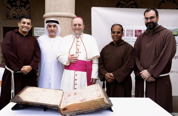 “L’antifonario mudéjar non rappresenta una forma di sincretismo, ma piuttosto un fecondo incrocio di civiltà – un tema di grande rilevanza per il nostro tempo”. Lo ha detto mons. Paolo Martinelli, vicario apostolico dell’Arabia meridionale, intervenendo ieri a Dubai all’evento culturale “Living Testimonies of the Convergence of Faith, Artistic Beauty, and the Dialogue of Civilizations Across the Ages”, promosso dal Crossroads of Civilizations Museum e dal Juma Al Majid Center for Culture and Heritage. Al centro della presentazione un raro manoscritto liturgico: un antifonario mudéjar databile tra il X e il XV secolo, proveniente dalla penisola iberica – probabilmente dal Portogallo o dalla Spagna meridionale – dove cristiani, musulmani ed ebrei convissero a lungo. Il termine mudéjar designa lo stile artistico che fonde elementi cristiani con decorazioni arabo-islamiche – geometrie, archi acuti, assenza di figure – elaborato dai musulmani rimasti nella penisola iberica dopo la Reconquista cristiana. L’opera raccoglie il ciclo liturgico dall’Avvento fino alla Domenica delle Palme ed è decorata con elementi artistici di cultura arabo-islamica. Per mons. Martinelli, il manoscritto evoca direttamente gli Emirati Arabi Uniti: “Un Paese con una chiara identità religiosa e, al tempo stesso, un luogo in cui religioni diverse convivono e culture si incontrano”. Ahmed Obaid Al Mansoori, presidente del museo, ha sottolineato che “le civiltà non crescono nell’isolamento, ma attraverso l’incontro”, aggiungendo che “questo manoscritto non parla solo del passato, ma di ciò che resta possibile”.